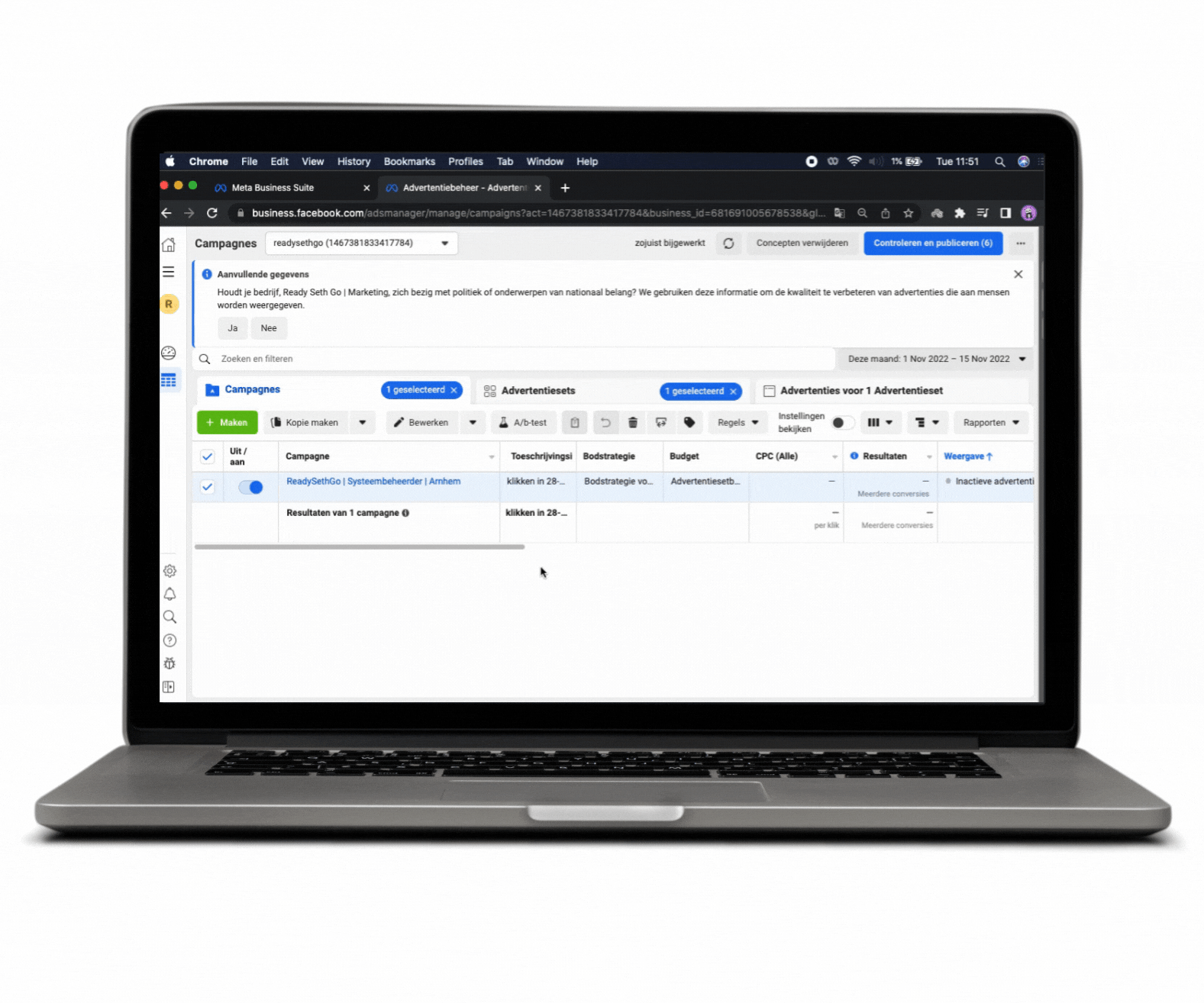 Dat heeft erg goed uitgepakt: de vacature is vervuld. Seth is enthousiast aan de slag gegaan, heeft zich goed verdiept in de opdracht, vacature en doelgroep en heeft de campagne daarop afgestemd. Tijdens de campagne is goed bijgestuurd waar nodig. Mocht ik ooit opnieuw een vacature hebben dan bel ik ReadySethGo 😊👍🏼