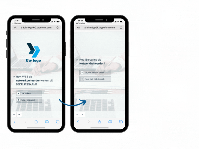 Door onze geautomatiseerde funnel kunnen we kwalificatievragen stellen en zo blijven alleen de passende kandidaten over.